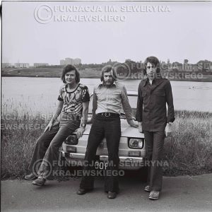 # 1328 – Poznań 1974 rok- Czerwone Gitary (w składzie: Seweryn Krajewski, Bernard Dornowski, Jerzy Skrzypczyk) z Fiatem 126p nad Jeziorem Malta, ówczesna propozycja reklamowa, która jednak nie doszła do skutku. Powstała nawet piosenka o małym polskim Fiacie