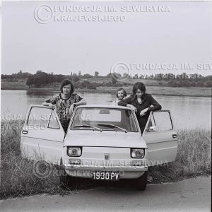# 1331 – Poznań 1974 rok- Czerwone Gitary (w składzie: Seweryn Krajewski, Bernard Dornowski, Jerzy Skrzypczyk) z Fiatem 126p nad Jeziorem Malta, ówczesna propozycja reklamowa, która jednak nie doszła do skutku. Powstała nawet piosenka o małym polskim Fiacie