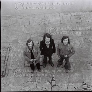 # 1369 – 1973r. Katowice przy Hali Widowiskowo-Sportowej 'Spodek'. Czerwone Gitary w składzie: Seweryn Krajewski, Jerzy Skrzypczyk, Bernard Dornowski.