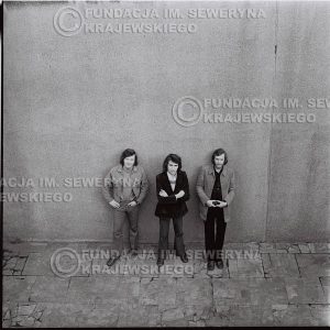 # 1370 – 1973r. Katowice przy Hali Widowiskowo-Sportowej 'Spodek'. Czerwone Gitary w składzie: Seweryn Krajewski, Jerzy Skrzypczyk, Bernard Dornowski.