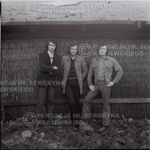 # 1371 – 1973r. Katowice przy Hali Widowiskowo-Sportowej 'Spodek'. Czerwone Gitary w składzie: Seweryn Krajewski, Jerzy Skrzypczyk, Bernard Dornowski.