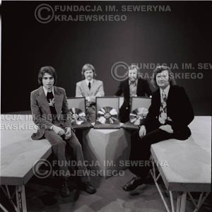 # 1379 – 1975r. studio TV Katowice, wręczenie Złotej Płyty za Longplay 'Spokój Serca'. Czerwone Gitary w składzie: Seweryn Krajewski, Ryszard Kaczmarek, Jerzy Skrzypczyk, Bernard Dornowski.