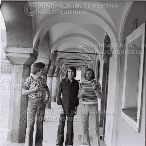 # 1422 – Sesja zdjęciowa na poznańskiej Starówce, 1973r. Czerwone Gitary w składzie: Bernard Dornowski, Seweryn Krajewski, Jerzy Skrzypczyk.