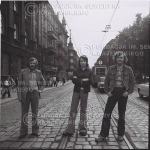 # 1461 – 1973r. sesja zdjęciowa w Gliwicach na ulicy Zwycięstwa. Czerwone Gitary w składzie: Bernard Dornowski, Seweryn Krajewski, Jerzy Skrzypczyk.