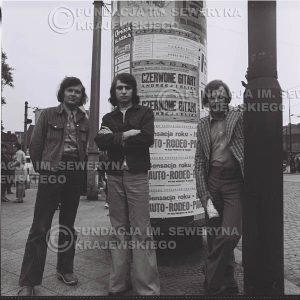 # 1462 – 1973r. sesja zdjęciowa w Gliwicach na ulicy Zwycięstwa. Czerwone Gitary w składzie: Bernard Dornowski, Seweryn Krajewski, Jerzy Skrzypczyk.