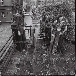 # 1493 – 1973r. Poznań, sesja zdjęciowa na ulicach Poznania. Czerwone Gitary w składzie: Bernard Dornowski, Seweryn Krajewski, Jerzy Skrzypczyk.