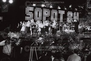 # 1546 – Maryla Rodowicz z dziećmi na scenie Opery Leśnej. 1984r. Międzynarodowy Festiwal Piosenki w Sopocie.