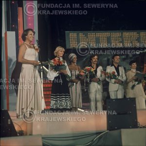 # 1628 – 1977r. Międzynardowy Festiwal Interwizji w Sopocie, na pierwszym Planie Irena Dziedzic (prowadziła koncert), dalej Helena Vondraczkowa, Jan Pospieszalski, Bernard Dornowski.