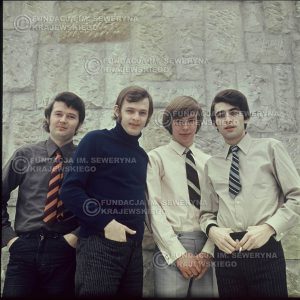 # 1111 – Czerwone Gitary 1971r. od lewej: Bernard Dornowski, Jerzy Skrzypczyk, Dominik Kuta, Seweryn Krajewski. Okolice Akademii Muzycznej w Warszawie, sesja zdjęciowa do płyty pt.:'Na fujarce'.